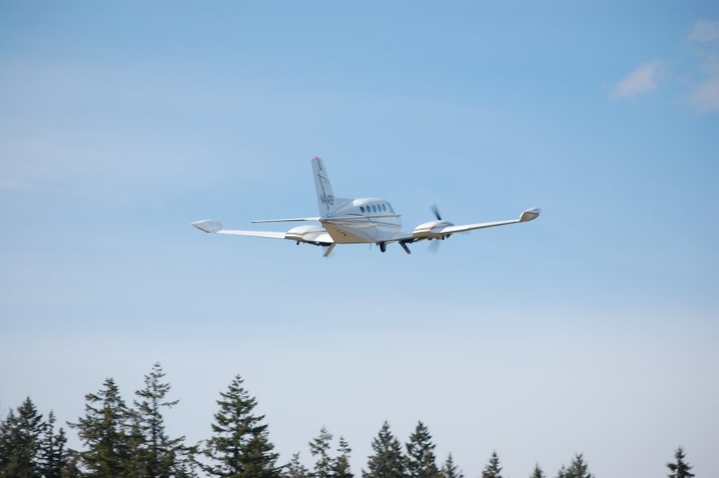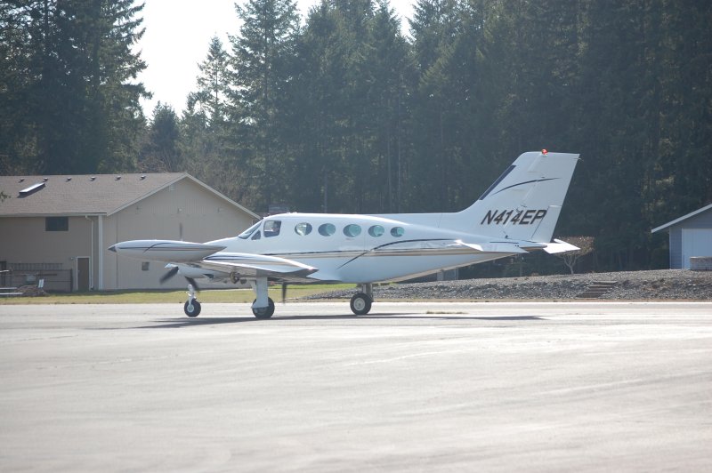 This Cessna 414 landed just before we did so the pilot let us check it out. It's a 1977 but just got brand new paint and leather interior. Very nice!