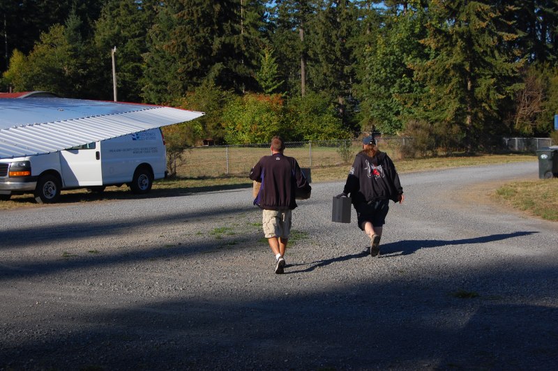 A couple of our techs were working in Eatonville today and needed a couple more intercom clock / speakers. Since our delivery girl was out, my boss Rich said he would drive them out. I said "How bout we fly". So we did.