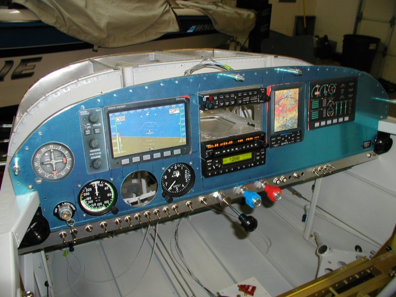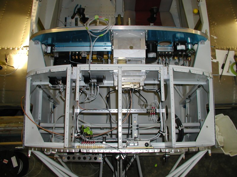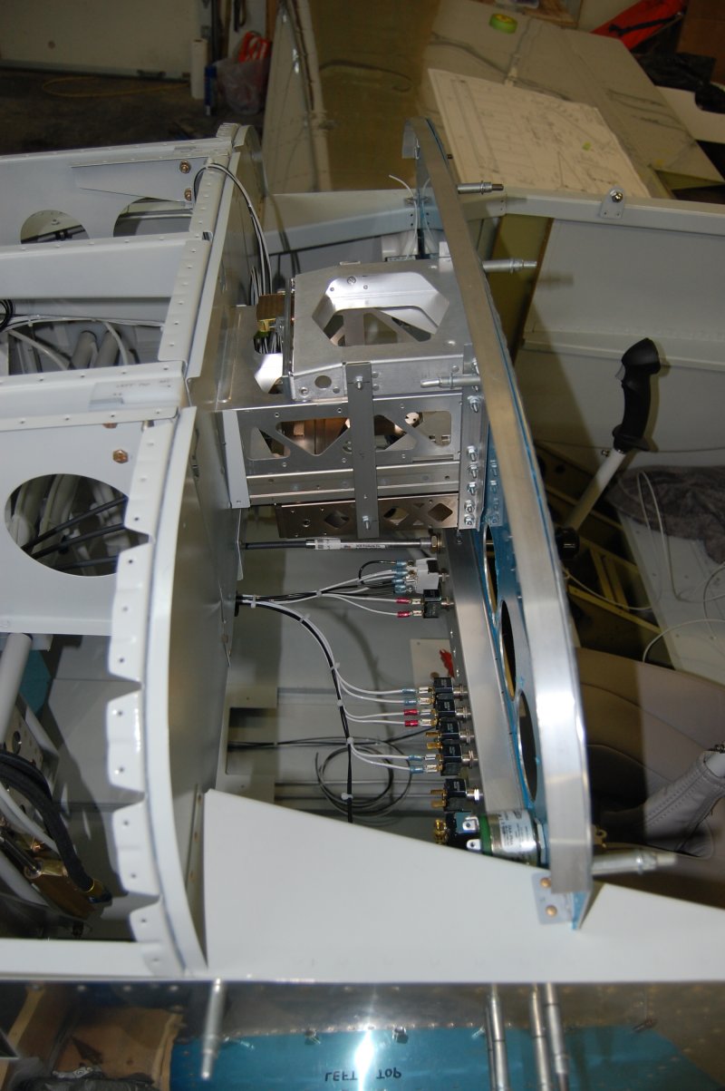 Here are the transponder and Nav/Comm powered up for the first time and the first items on the avionics bus. I put my handheld comm antenna on the Nav/Comm incase of accidental transmit too.