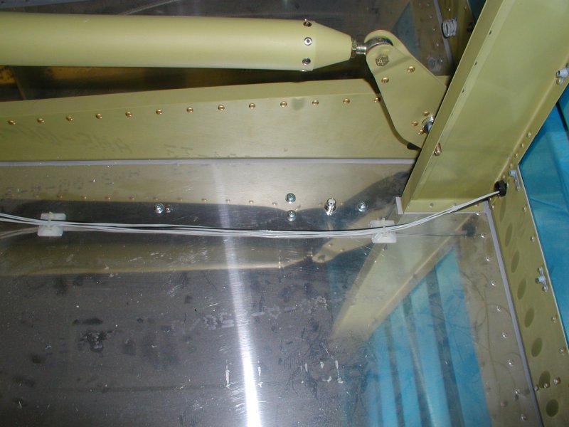 Kind of a pain but I installed these tiewrap bases for the wiring inside the tunnel. Since the elevator pushrod moves back and forward in the tunnel it's important to have everything out of the way.