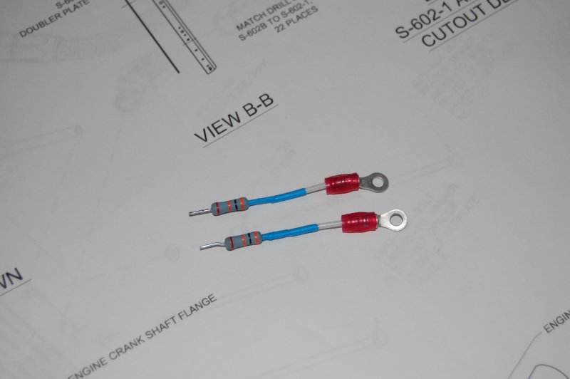 Instead of using the engine tach drive, the Dynon EMS can get the RPM off of the magnetos. These are 30K limiting resistors for the Dynon.