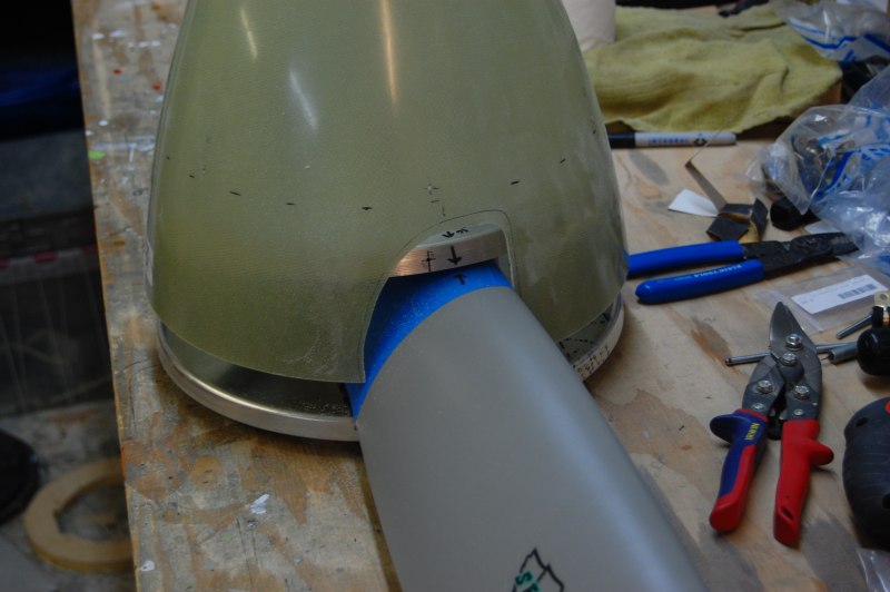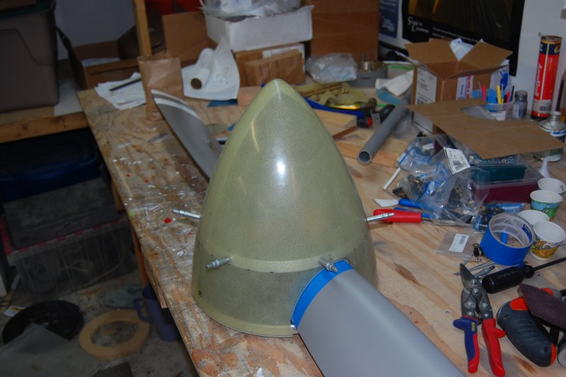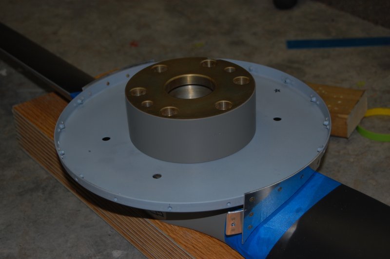 Here is the prop spacer. The only problem with this is it's pressed onto the back of the prop and very difficult to get back off. Since the spinner back plate is sandwiched between the prop spinner and prop, you have to do all the work on the back plate before you press them together. (drill holes, install nutplates, etc.)
