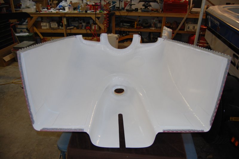Here's something, I've been trying to decide what to paint the inside of the cowl with. I wanted something I could brush on that would seal the cowl from oil and and or gas. I started thinking about the engine compartment in an inboard boat. So I went to the marine store and sure enough they had "BilgeKote". Made for fiberglass and is fuel and oil proof. Perfect!