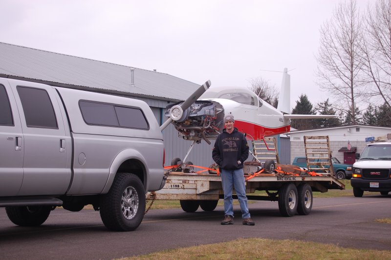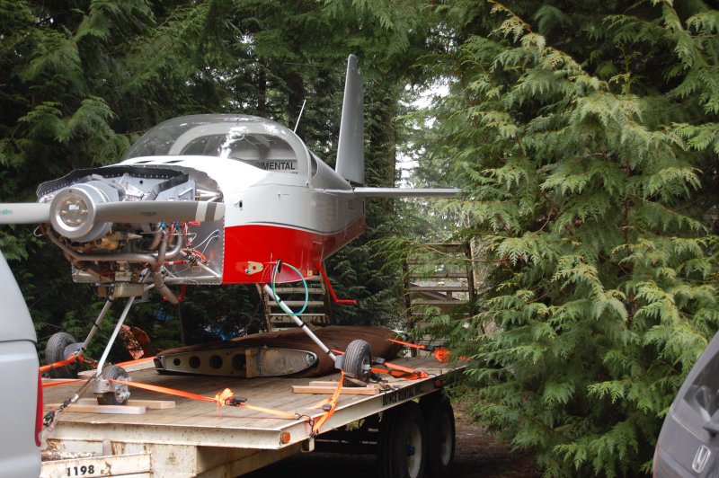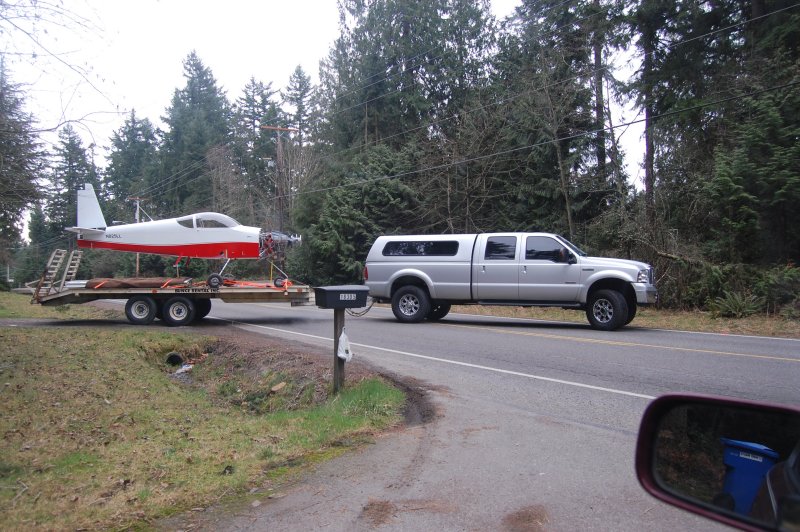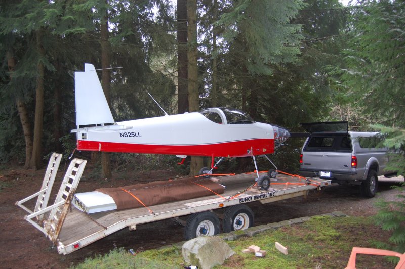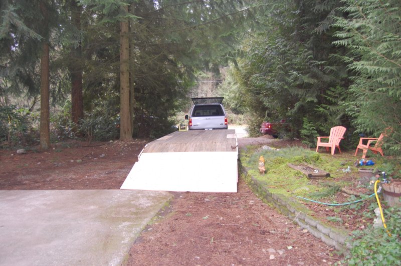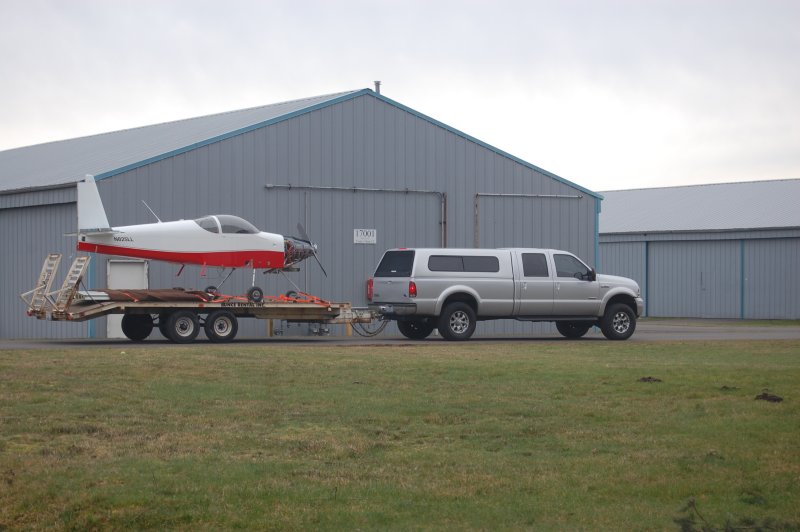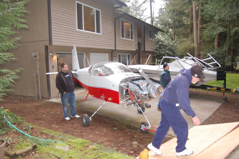 We figured it would be easier to load the plane downhill then up so we put the trailer in front of the house.