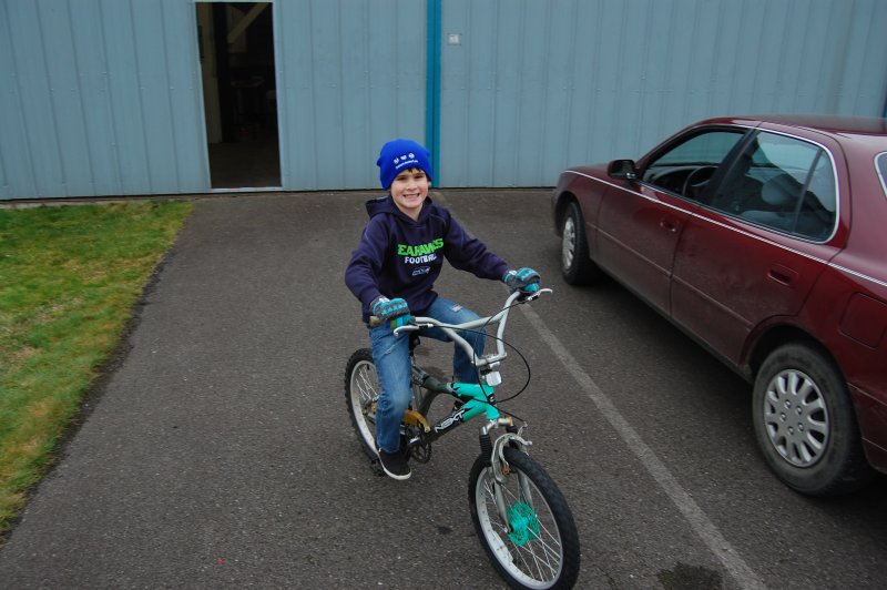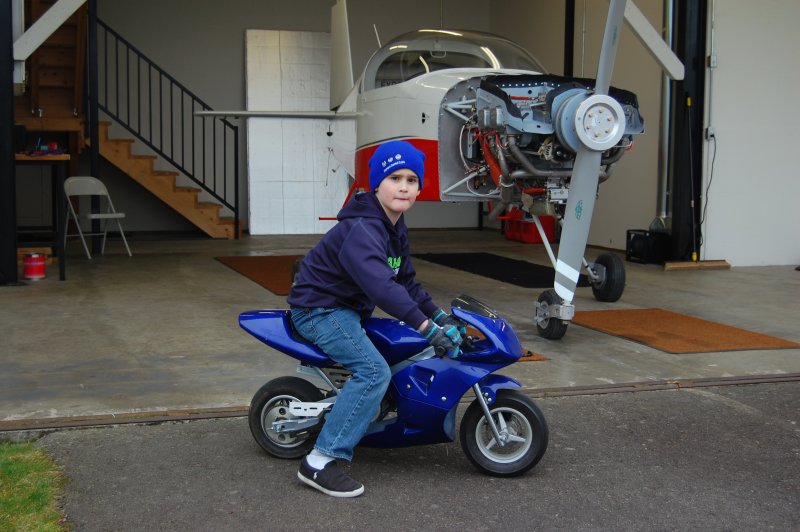 Dave, the guy I bought the hangar from, gave Lane his electric mini bike. He loves it!