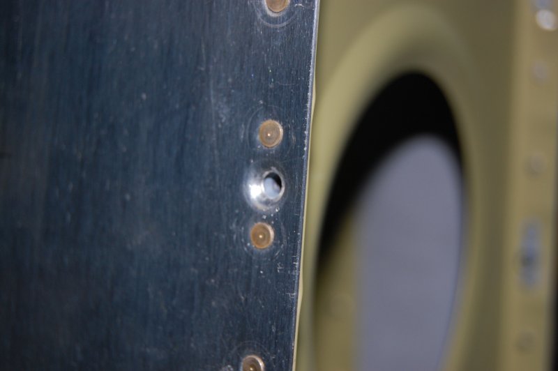 Here where the wing walk area doubler is, the rivets and #8 screw holes are machine countersunk.