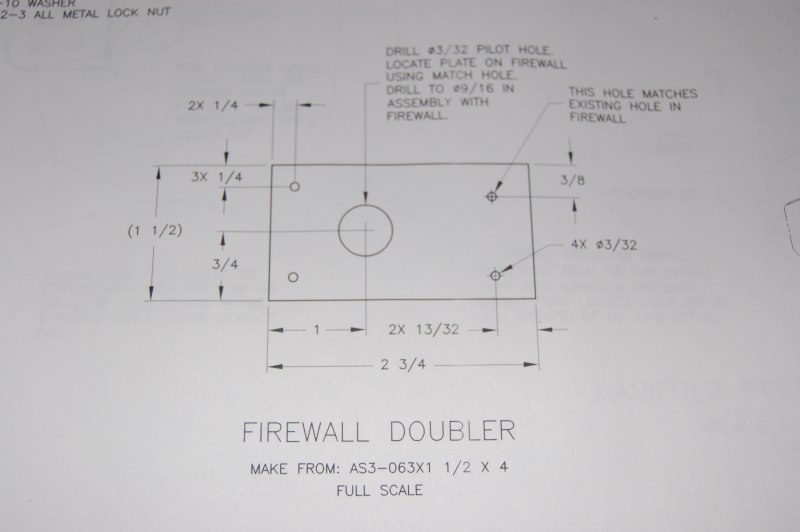 Started working on doubler for firewall fuel line penetration
