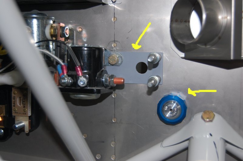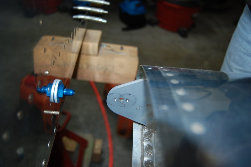 Drilled the fuel line doubler and installed an eyeball for the throttle cable