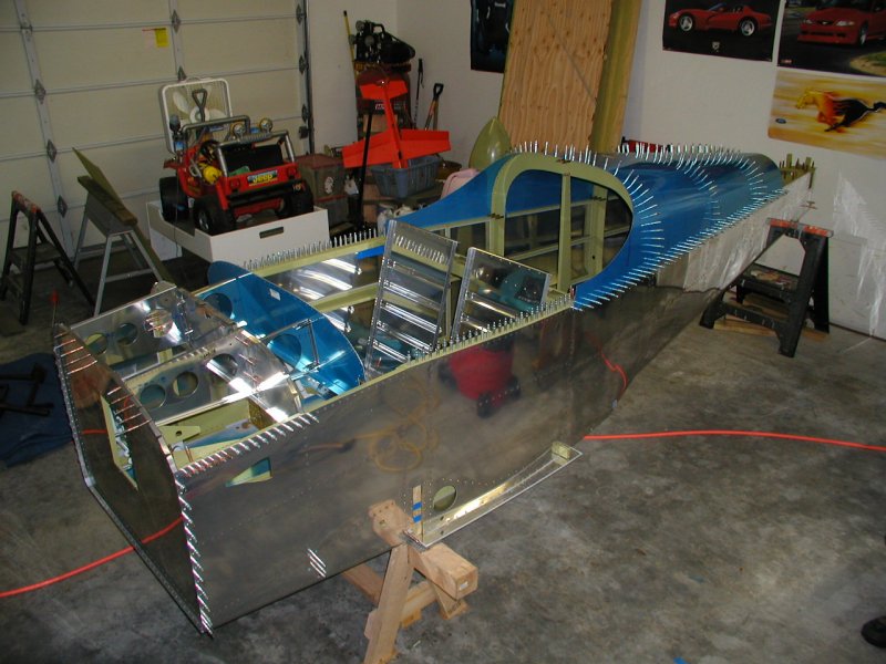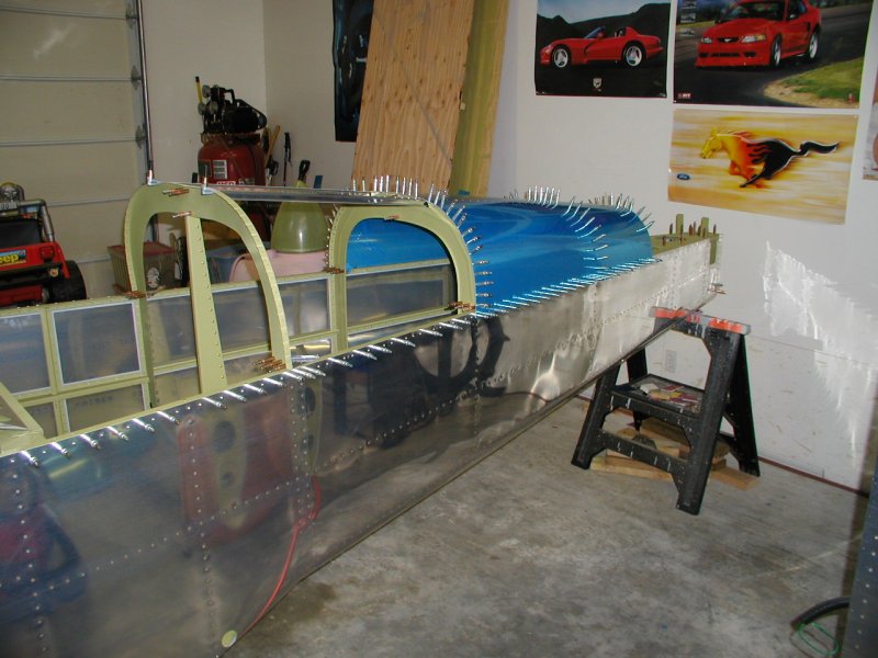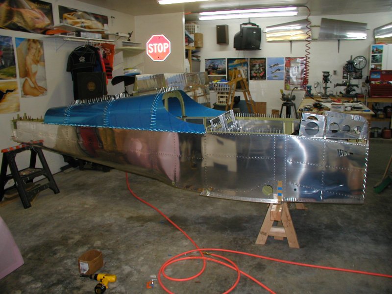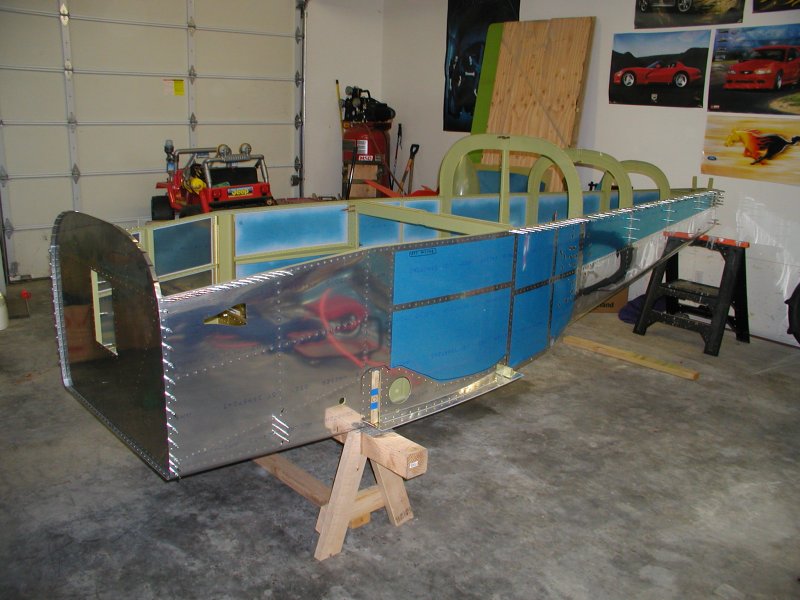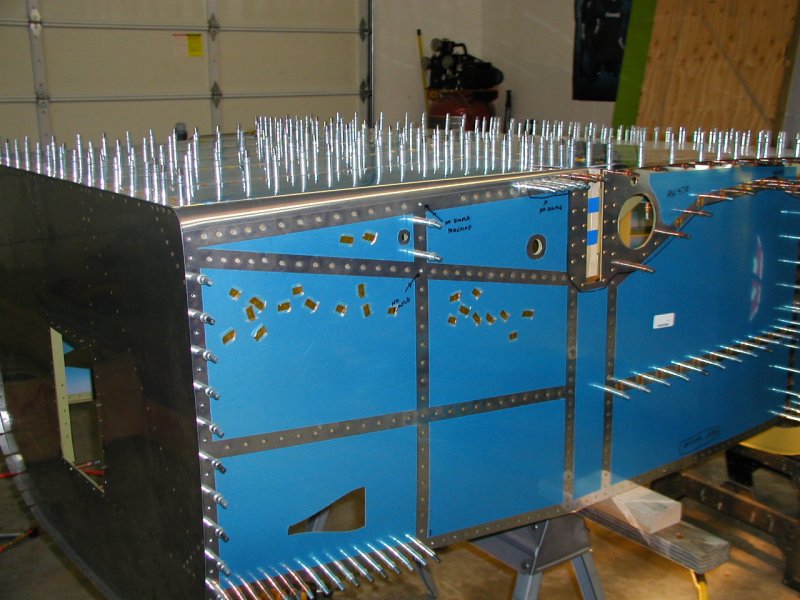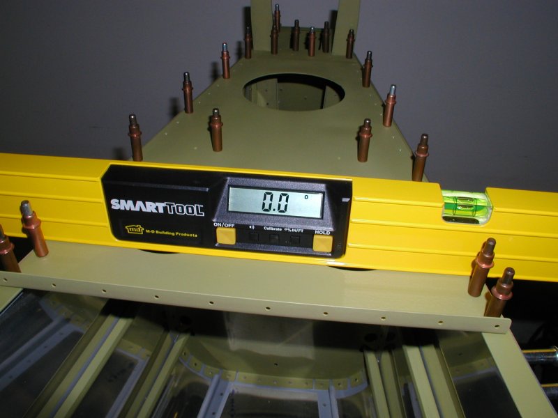 Things have to be perfectly level when this aft deck gets riveted. If the fuselage is twisted when you rivet, it will be twisted forever.