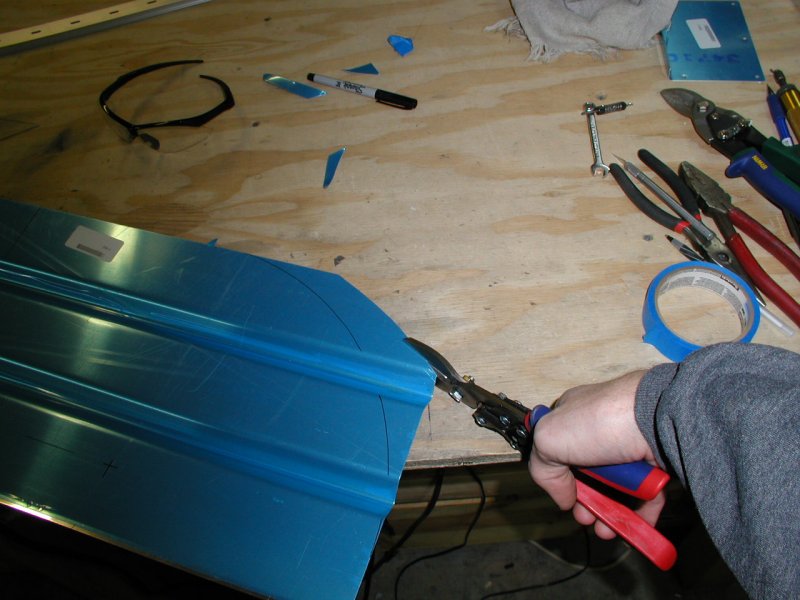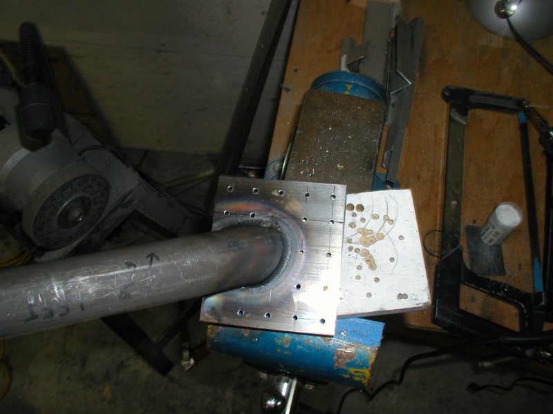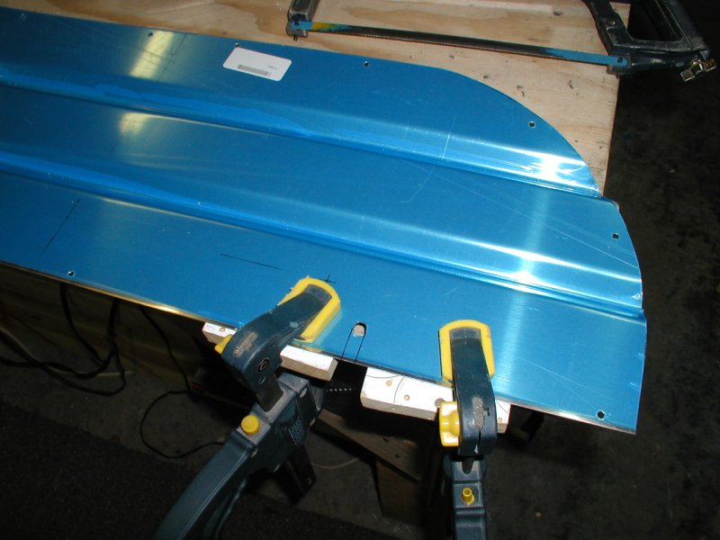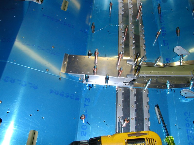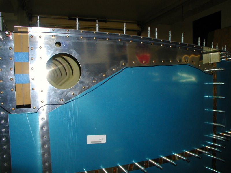 And here it is drilled to the fuselage. I had to heat the bottom right corner with a torch and bent it to match the skin.