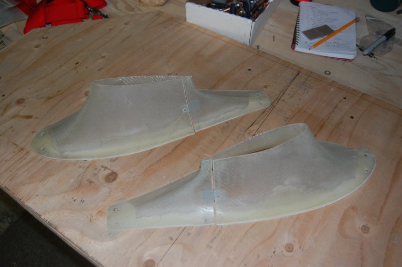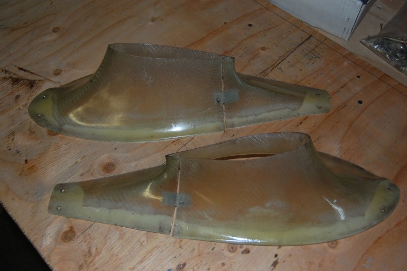 Here they are after 3 squeegied layers of fiberglass resin at 75 minute intervals to fill any pinholes. I will primer them soon.