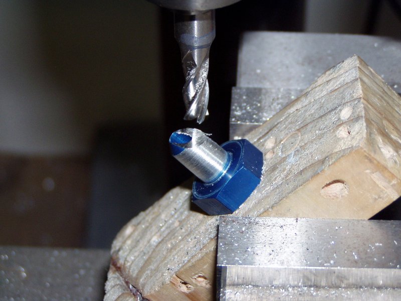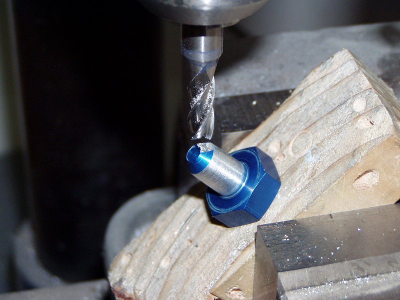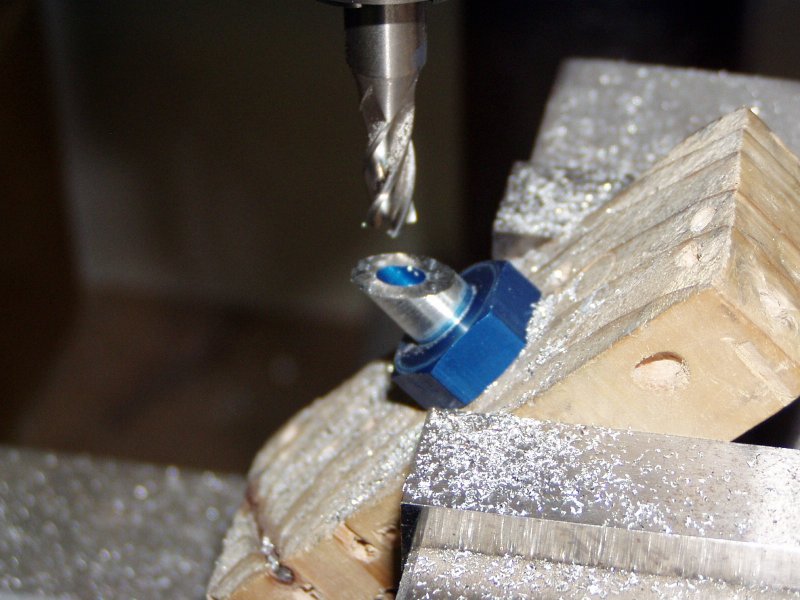 Then I drilled a hole in this block so I could clamp it in the vise