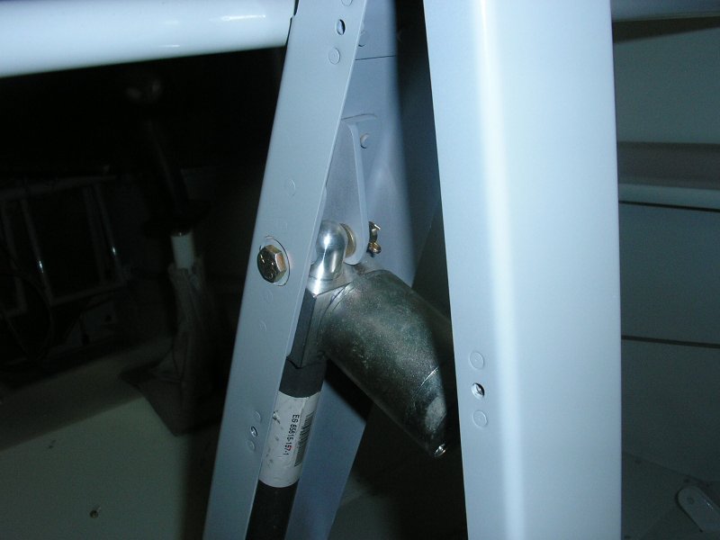 At the top of the gear leg it connects to a 45deg connector to get inside the fuselage.