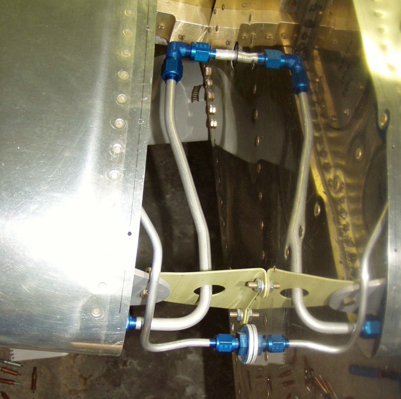 Needed to make the fuel tank attach line for the right wing. Since this wing has and aerobatic "flop" tube, the line has to run to the leading edge, and then connect to the tank fitting.